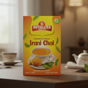 Royal Hyderabadi Irani Chai with 10% extra strong premium tea. Captures the essence of Hyderabadi tea culture for perfect kadak chai.